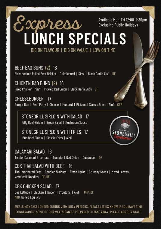 CBK TAURANGA - MENU