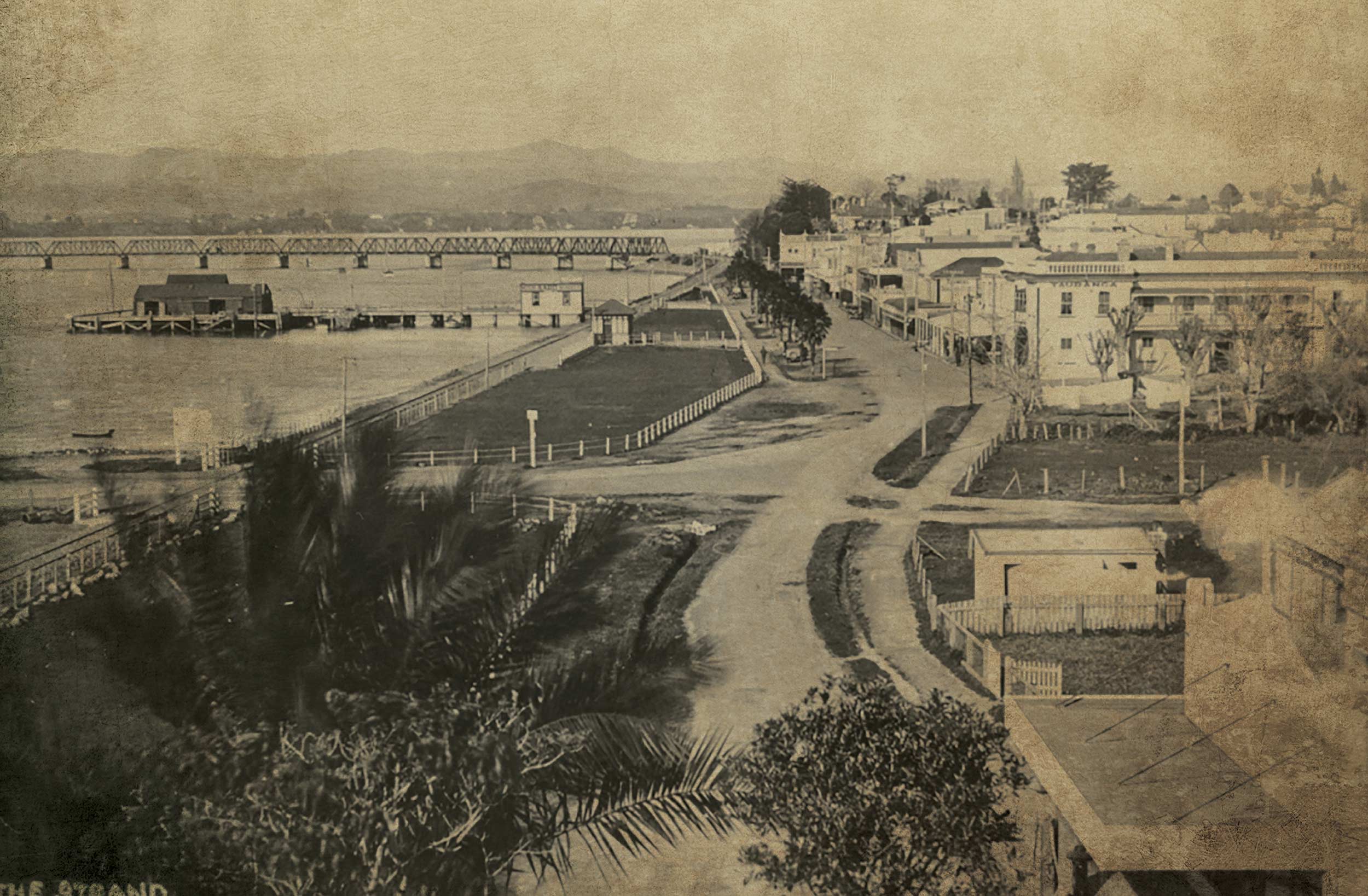 Largest urban centre and city in Bay of Plenty, 107 km east of Hamilton. Tauranga dates from the establishment of a Church Missionary Society mission at Te Papa, as it was then known, in the 1830s. During the wars of the 1860s the government established two redoubts (fortifications) there. The original mission house, The Elms, still stands, as do the remains of the Monmouth redoubt. From the 1910s, as dairying developed in neighbouring districts, the population grew. Growth was further fostered in the later twentieth century by horticulture – in particular kiwifruit growing – in surrounding districts and by the lifestyle appeal of the town.